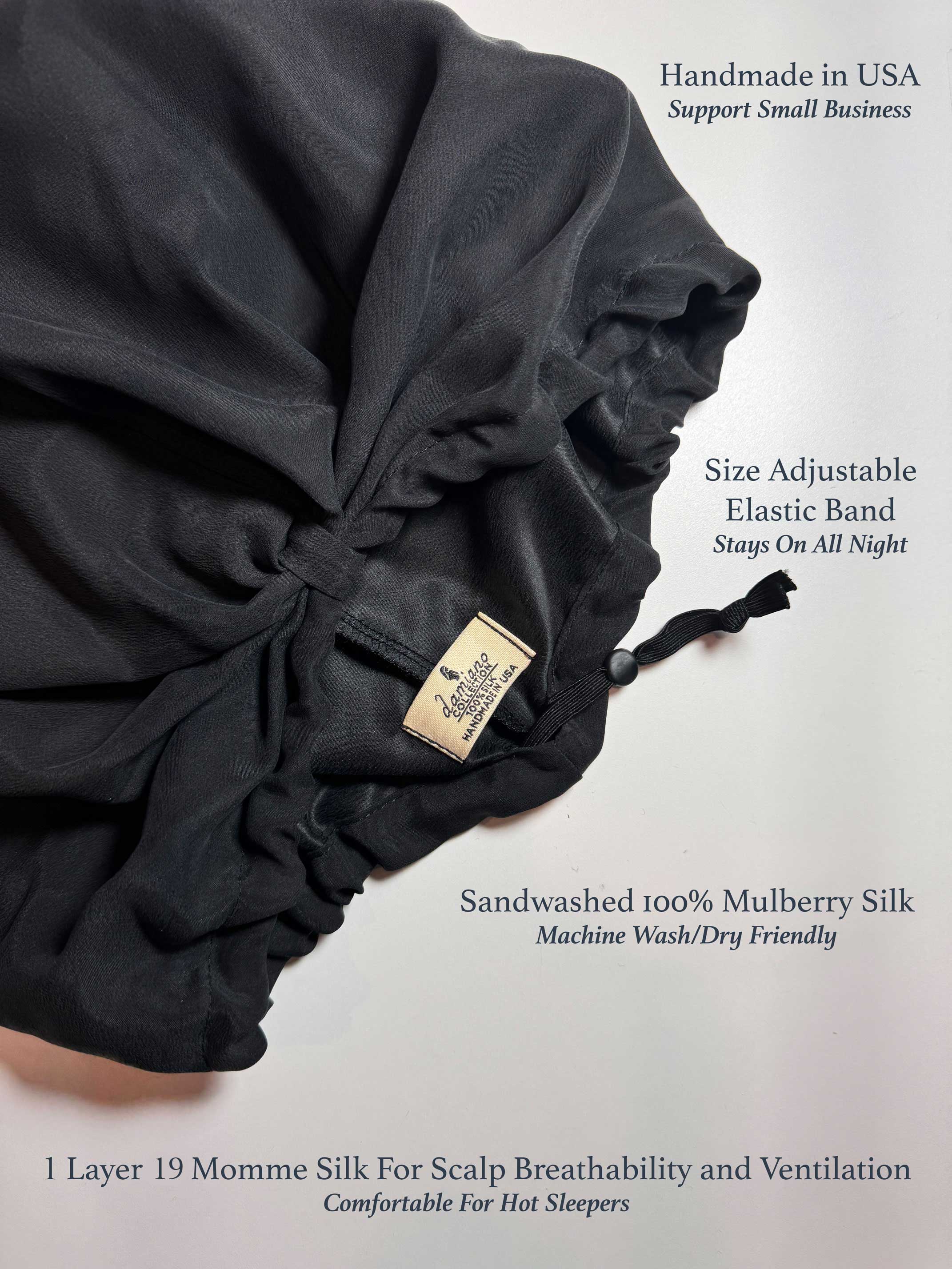 Constructed with one layer of ultra-breathable yet durable soft washed silk and an adjustable elastic band, it offers optimal comfort, especially for warmer sleepers. Protect your hair from nightly wear and tear, and wake up to smoother, healthier locks with our thoughtfully designed sustainably made solution.
