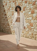 These relaxed fit trousers are cut from soft and breathable raw silk noil; ideal for comfort, breathability, and easy care. The trousers feature a cropped ankle length cut elastic drawstring waist and low-profile side seam pockets.