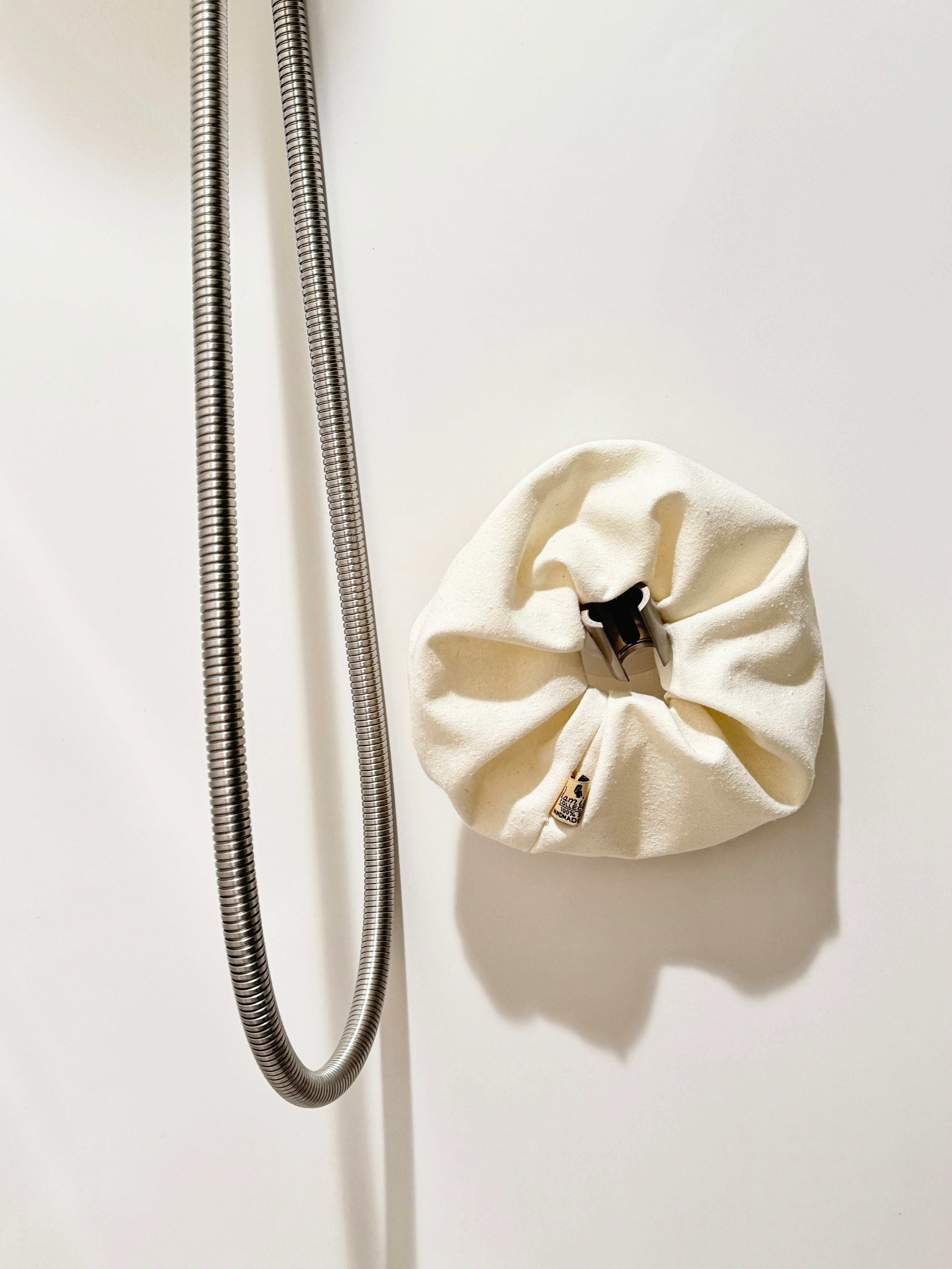 Upgrade your post-shower routine with the Raw Silk Towel Scrunchie. Made from our soft all natural raw silk, this scrunchie gently absorbs excess water while protecting your hair from damage frizz, making it the perfect companion for drying and styling.