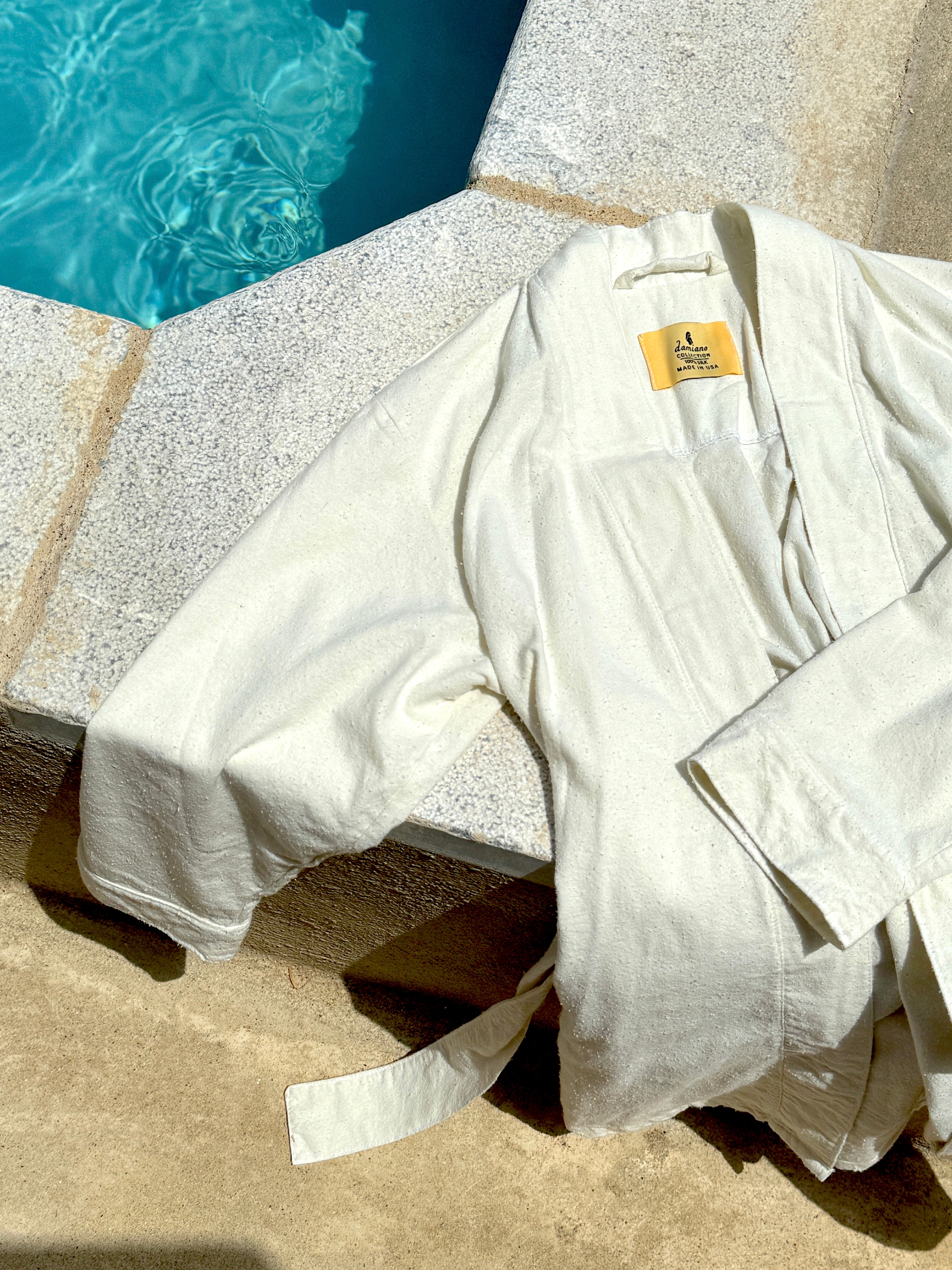 Collect a matching set by pairing the robe with our Raw Silk Easy Pant.