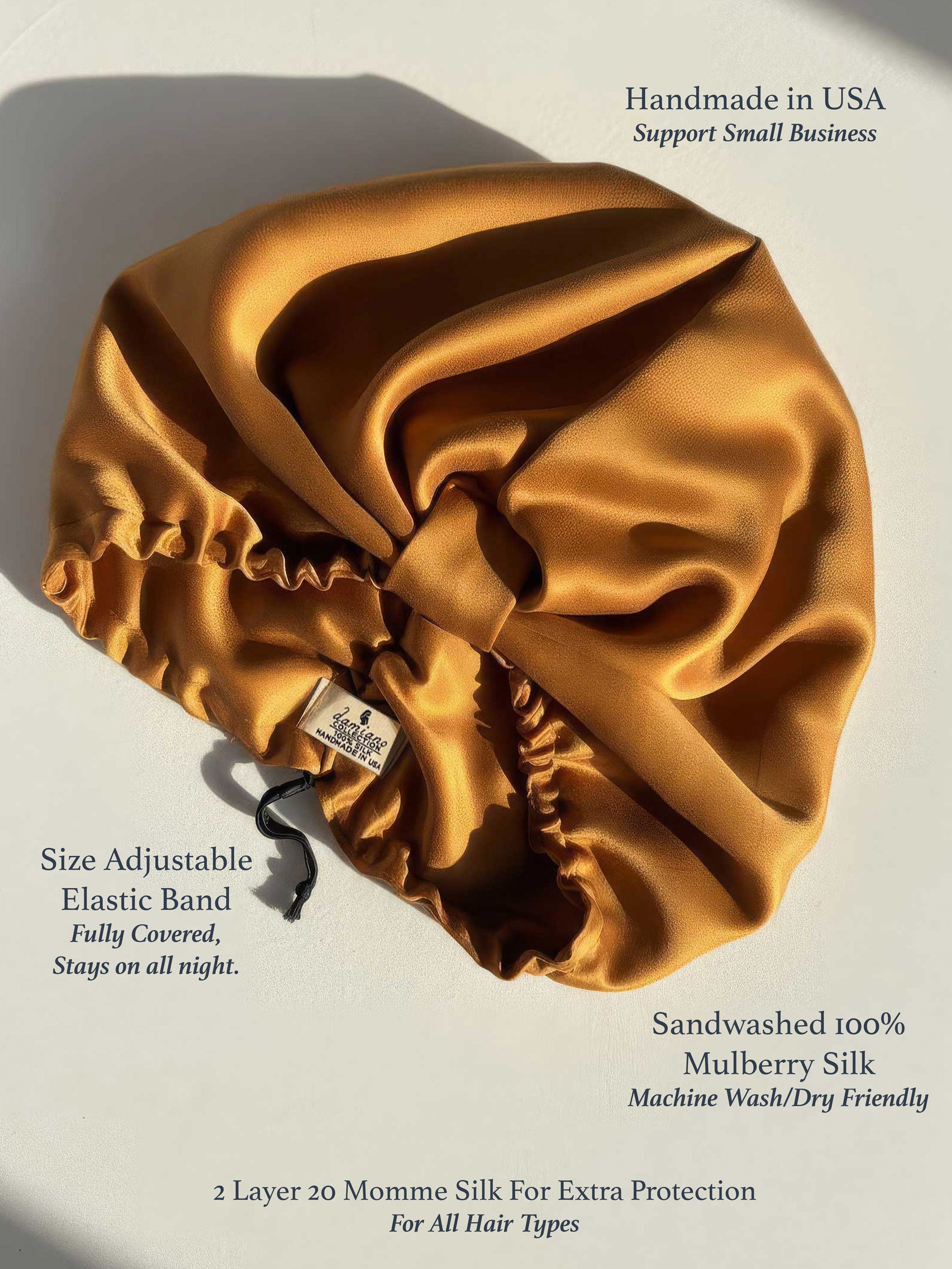Constructed with two layers of breathable yet durable 20 momme washed silk and an adjustable elastic band, it offers optimal comfort for all hair types. Protect your hair from nightly wear and tear, and wake up to smoother, healthier locks with our thoughtfully designed sustainably made solution.