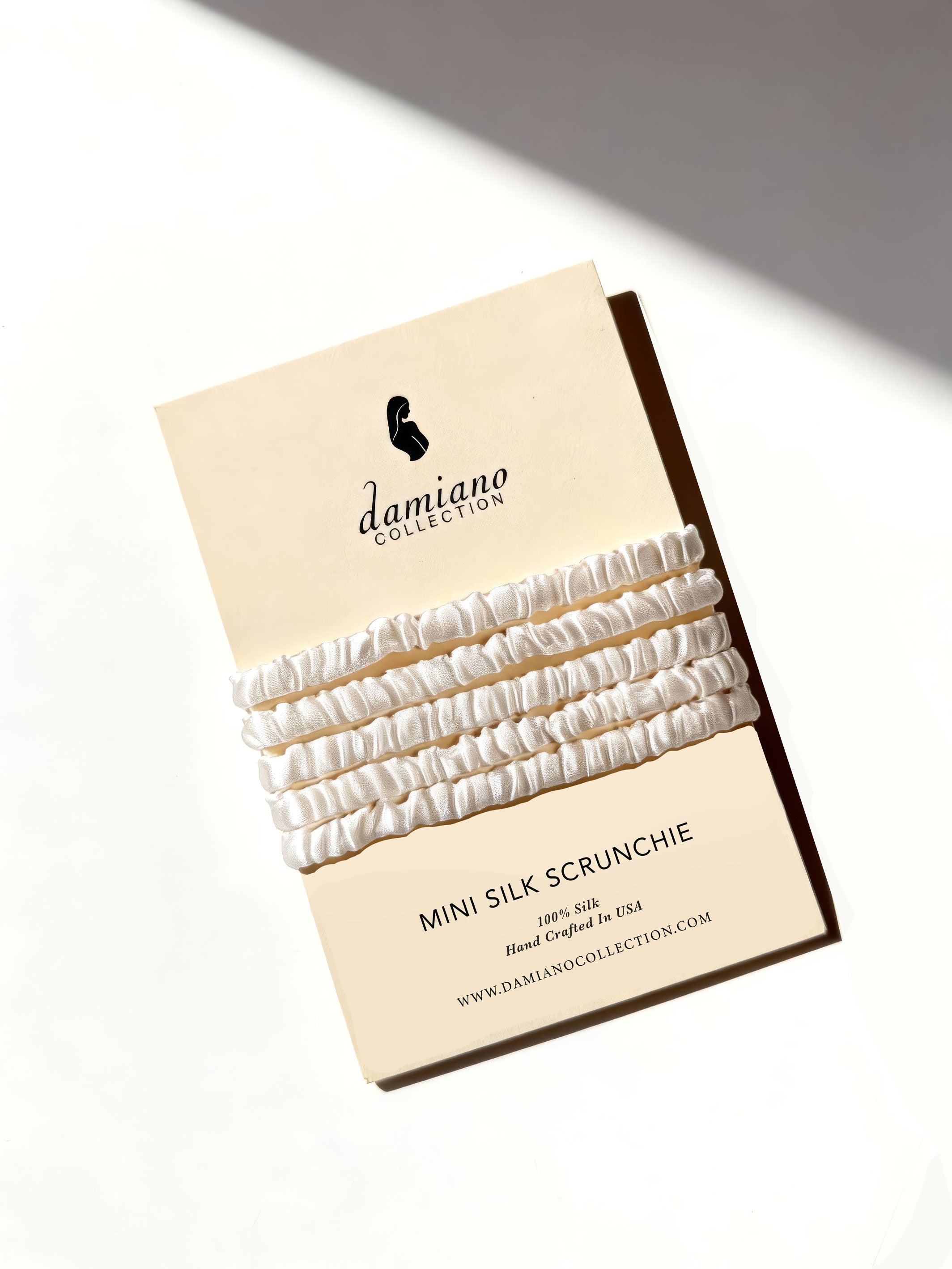 Made of 100% silk ribbon, the mini scrunchie holds just as well as traditional hair ties yet pulls out flawlessly without damaging or ripping hair.