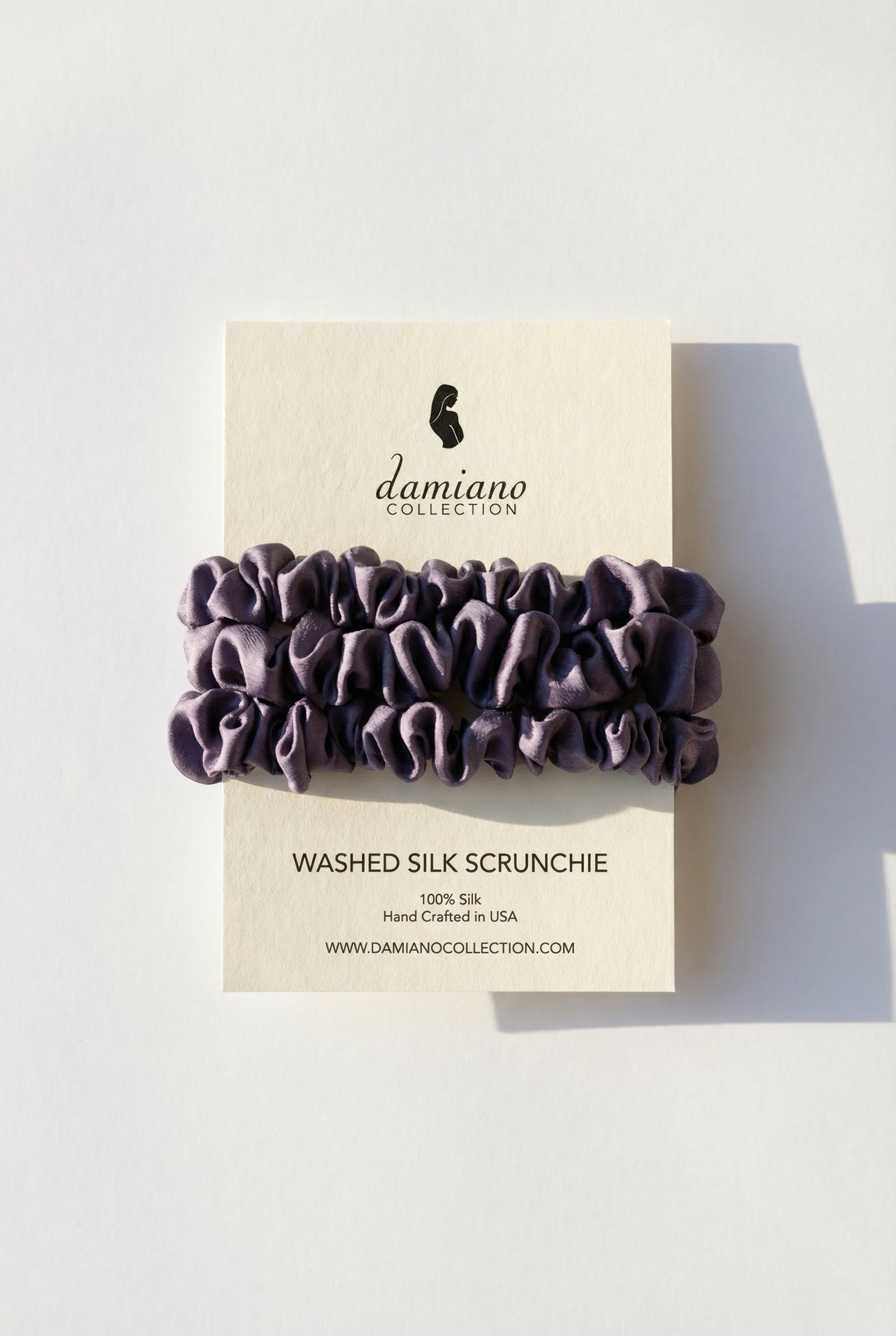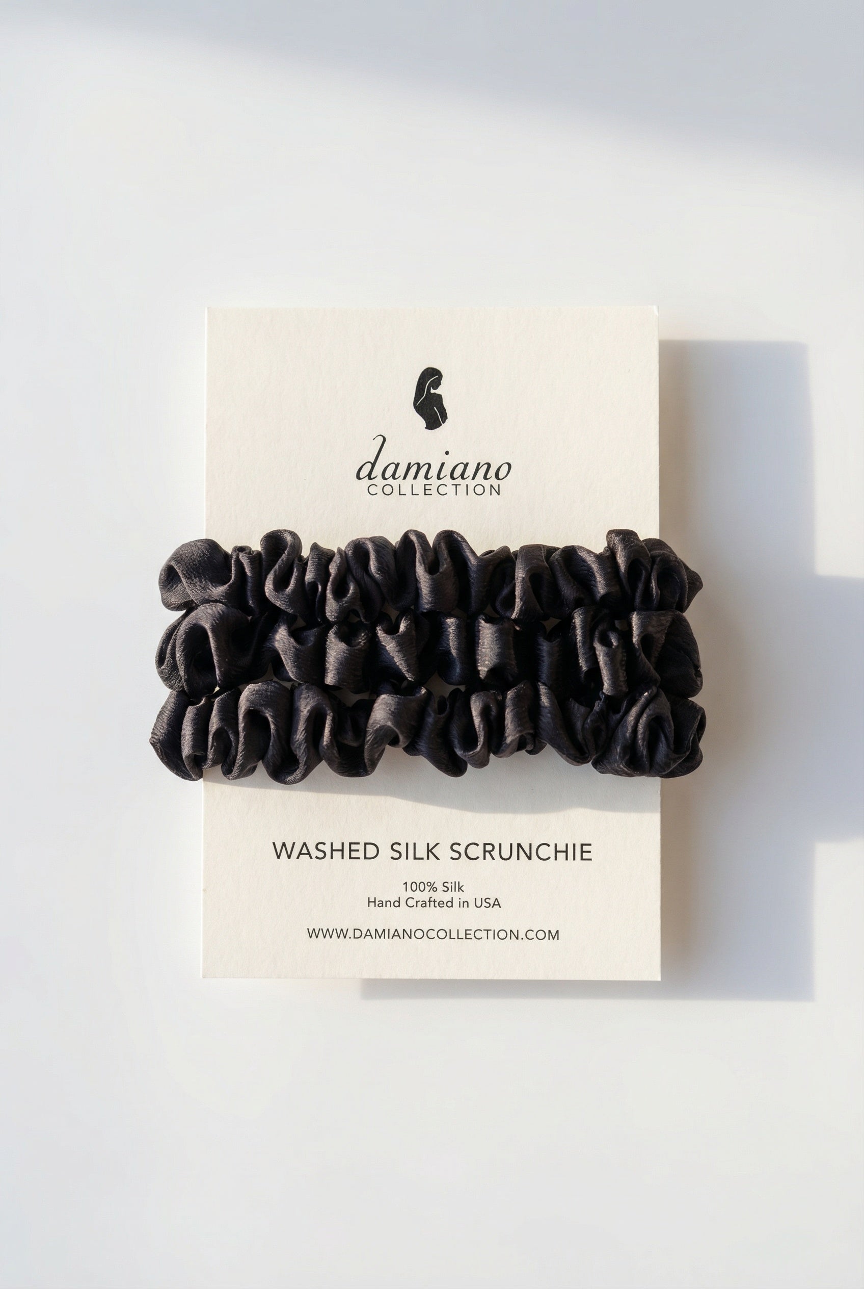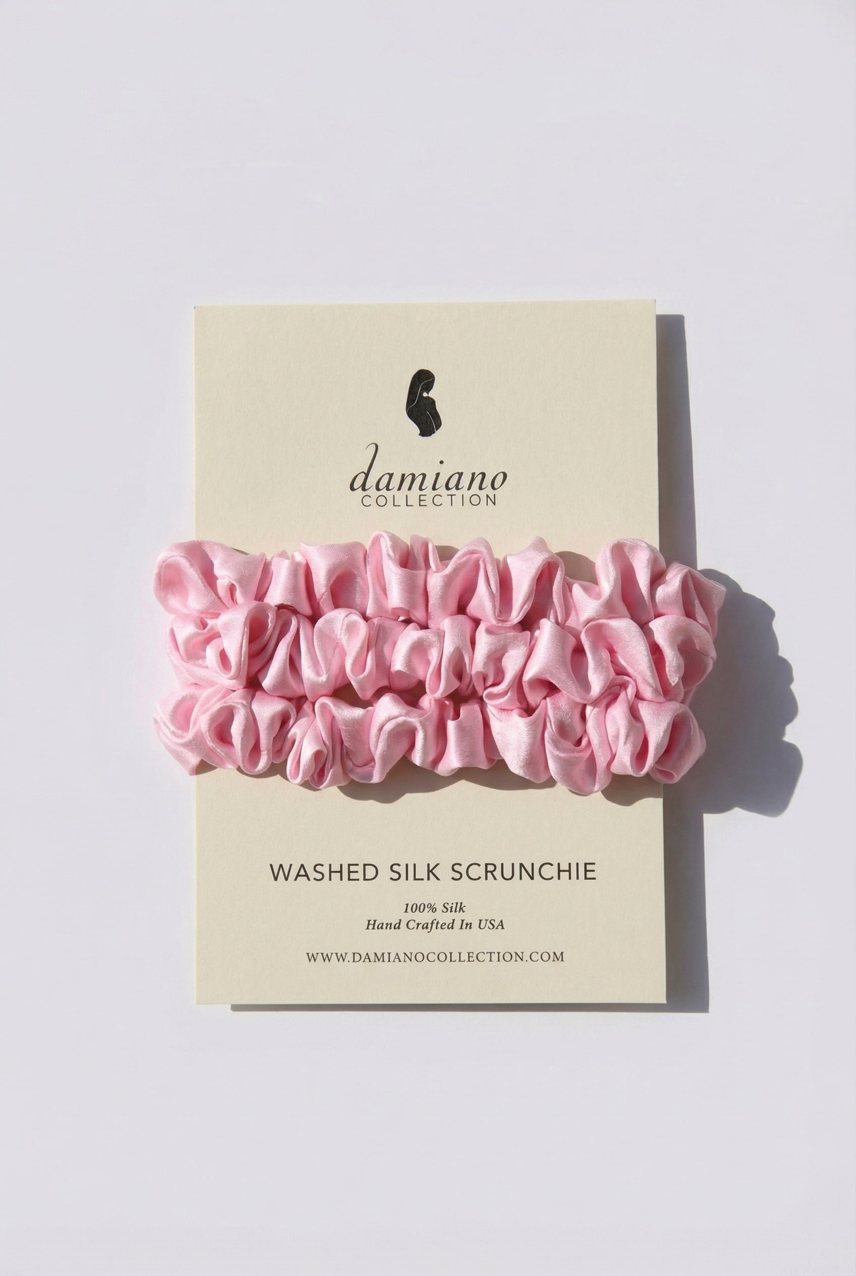 Sand washed silk has a soft suede-like texture and slightly less shine. This specialty silk is ideal for increasing durability and longevity of the fabric, making the scrunchies suitable for use on wet or dry hair. It also gives a micro-texture to the silk that helps it gently grip the hair.
