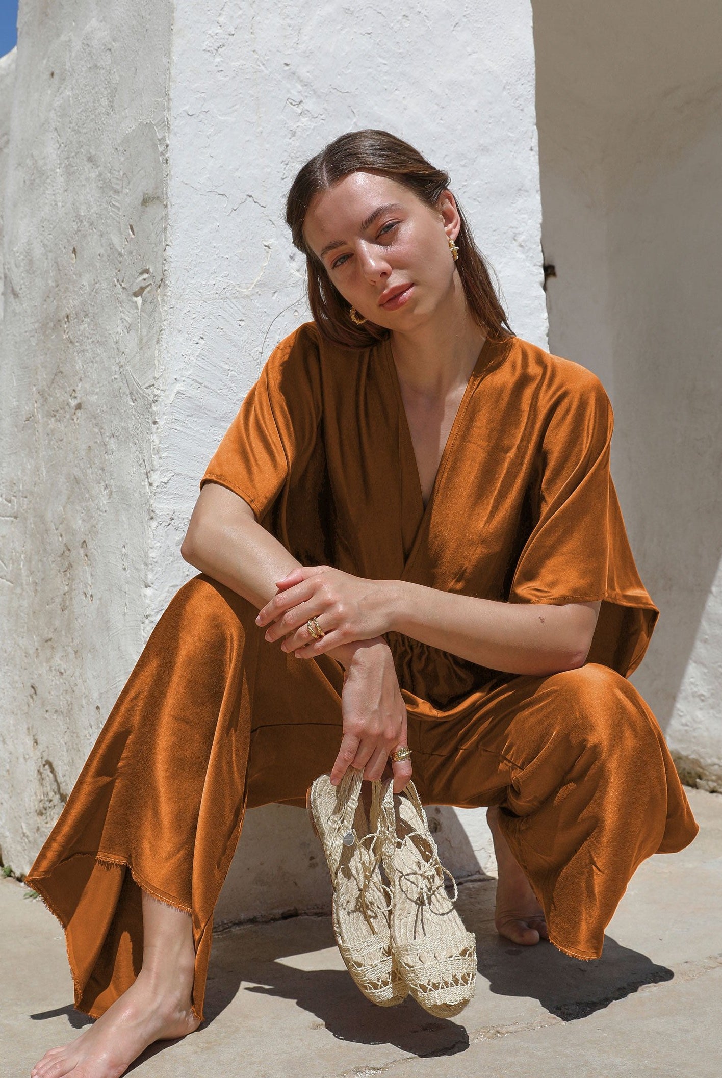 Our washed silk is 100% Mulberry silk fabric that has undergone a special finishing process to give it a softer, more relaxed texture with a slightly sueded appearance. This simple non-toxic process, often called "sandwashing" or "enzyme washing," removes the natural stiffness and sheen of traditional silk, making it feel buttery smooth, lightweight, and drapey.