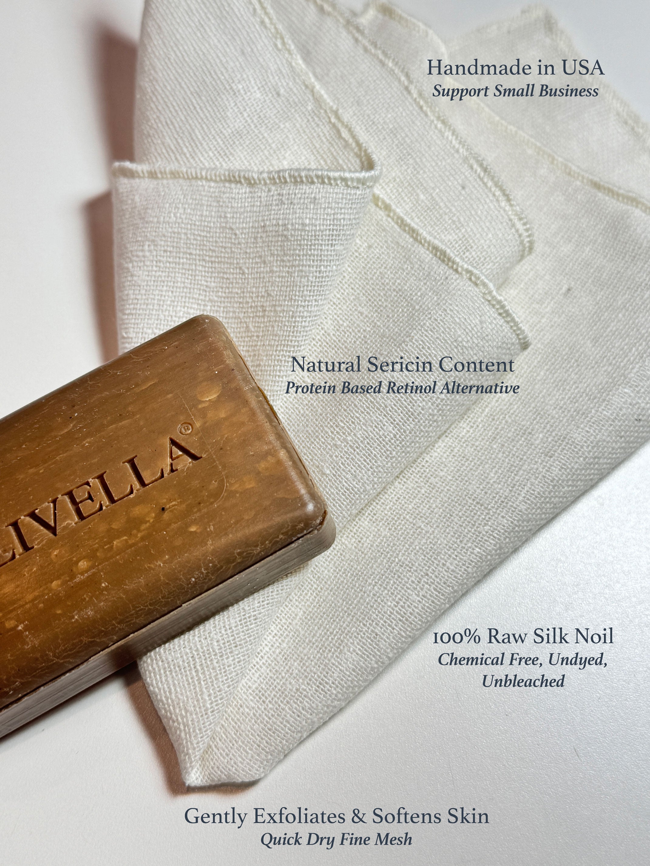 Experience the rejuvenating effects of our exfoliating raw silk face cloth by incorporating it into your daily skincare routine. Simply wet it with warm water to delicately remove makeup and dead skin cells, unveiling a complexion that's brighter and firmer.