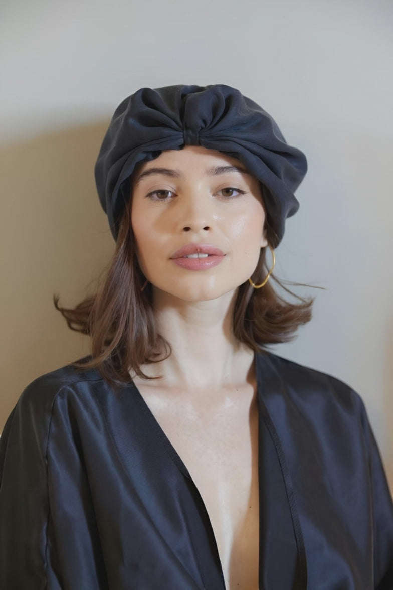 Reduce hair breakage and frizz while you sleep with our 100% silk hair turban. Hand crafted from premium sandwashed mulberry silk, it's exceptionally soft, durable, and machine washable for effortless care.