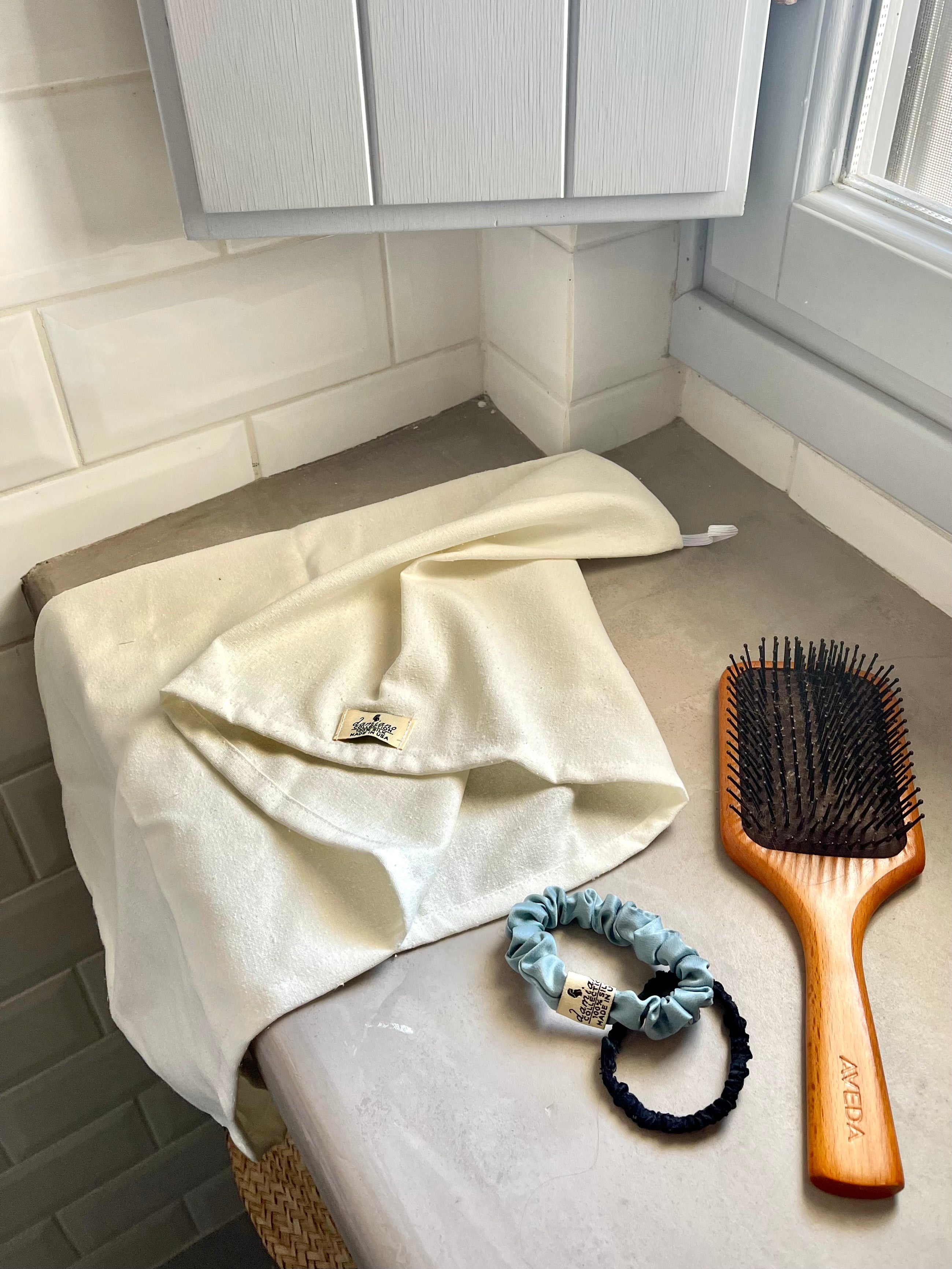 Discover a gentler way to care for your hair with our chemical and dye-free raw silk hair towel. Unlike traditional cotton or microfiber bath towels, our raw silk towel offers a healthier alternative to keep your locks hydrated and frizz-free. Best for all hair types including frizz-prone curly hair.