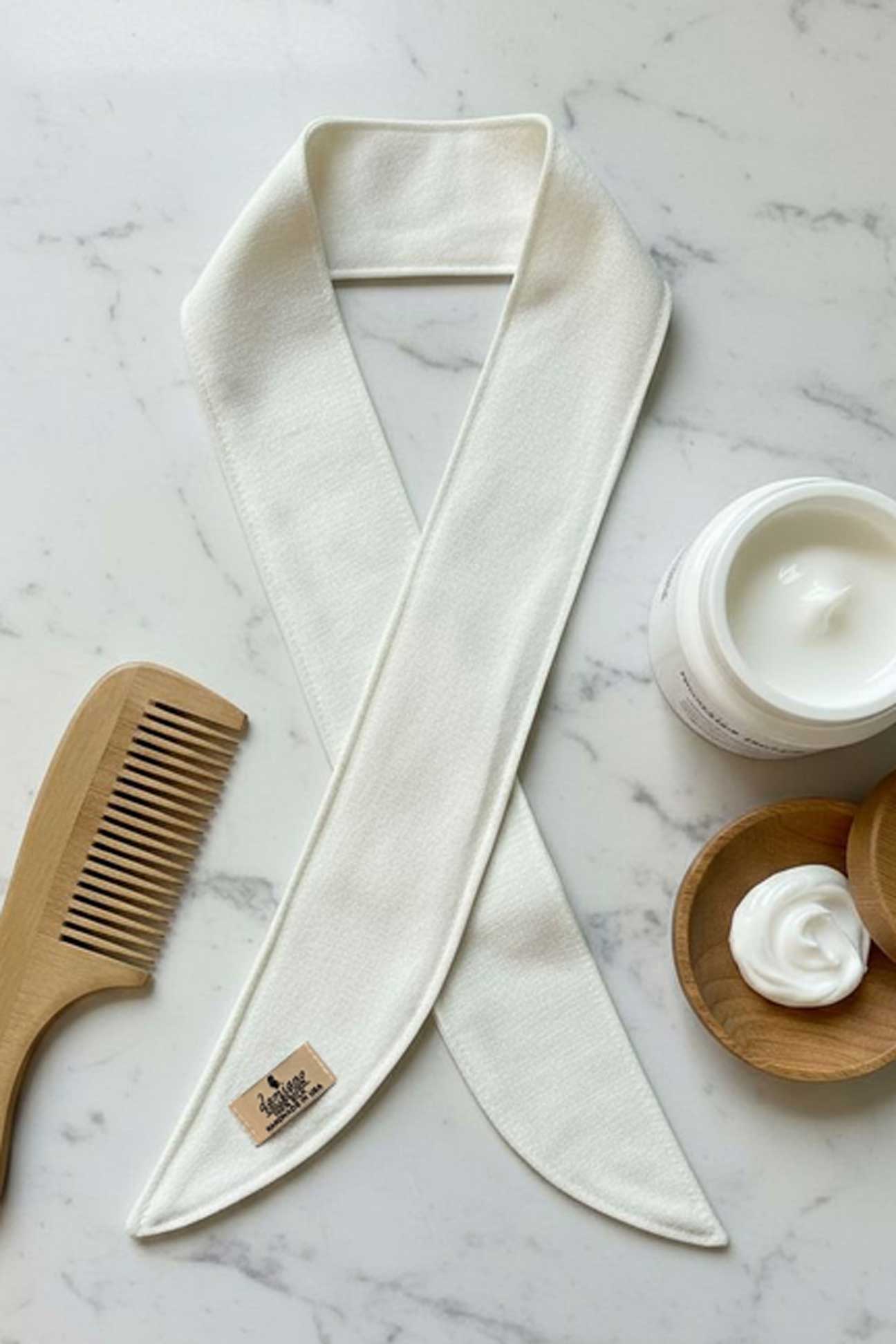 Crafted from premium raw silk, this tie hair band gently keeps hair away from the face, allowing you to focus on your beauty rituals with ease. Whether you're cleansing, moisturizing, or indulging in a facial treatment, our silk band ensures your hair stays perfectly in place.